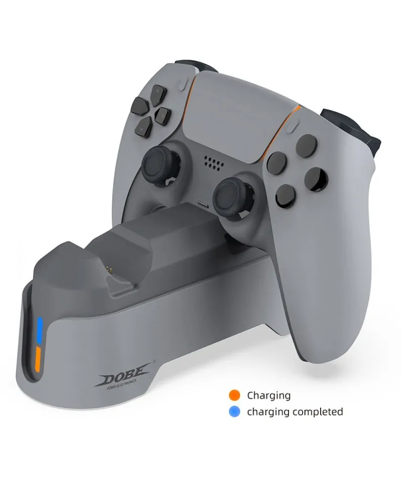 Зарядная станция для 2х геймпадов DualSense PS5 (Dobe TP5-1501X). Привлекательная подставка и компактный размер, это зарядное устройство, выполненное в приятном дизайне, обеспечивает стильный внешний вид и удобную практичную зарядную станцию для контроллеров DualSense. Сохраняет пространство развлечений аккуратным, организованным, а также соответствует всем аксессуарам PS5 эстетически.